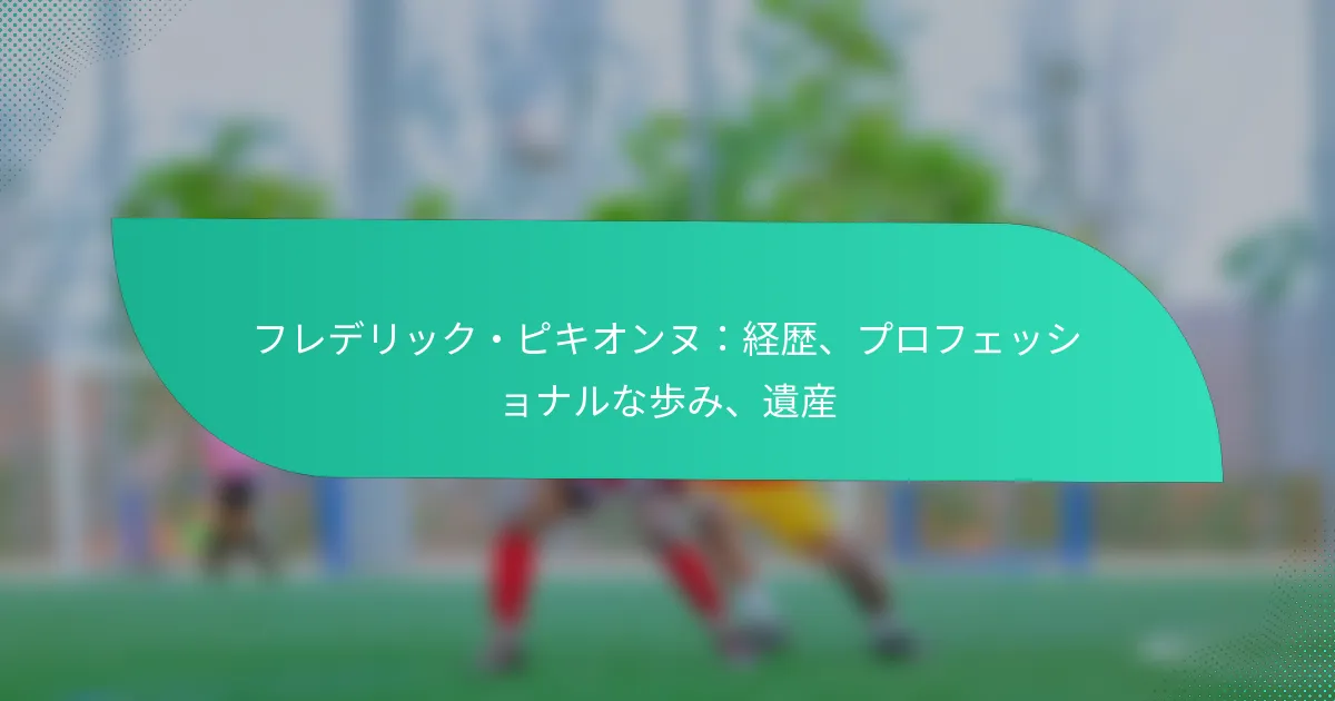 フレデリック・ピキオーヌは、ピッチ内外での重要な貢献、特に若い選手の指導や地域貢献活動によってサッカーで記憶されています。彼の遺産には、国際大会でのパフォーマンスやさまざまなサッカー協会からの認識が含まれ、スポーツへの持続的な影響が示されています。