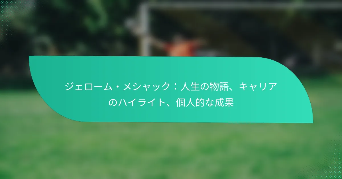 ジェローム・メシャックは、サッカーキャリアを超えた重要な個人的な業績を上げており、地域社会への奉仕、若者のメンターシップ、恵まれないアスリートのための擁護に焦点を当てています。これらの活動へのコミットメントは、彼にフィールド内外での認識と尊敬をもたらしています。